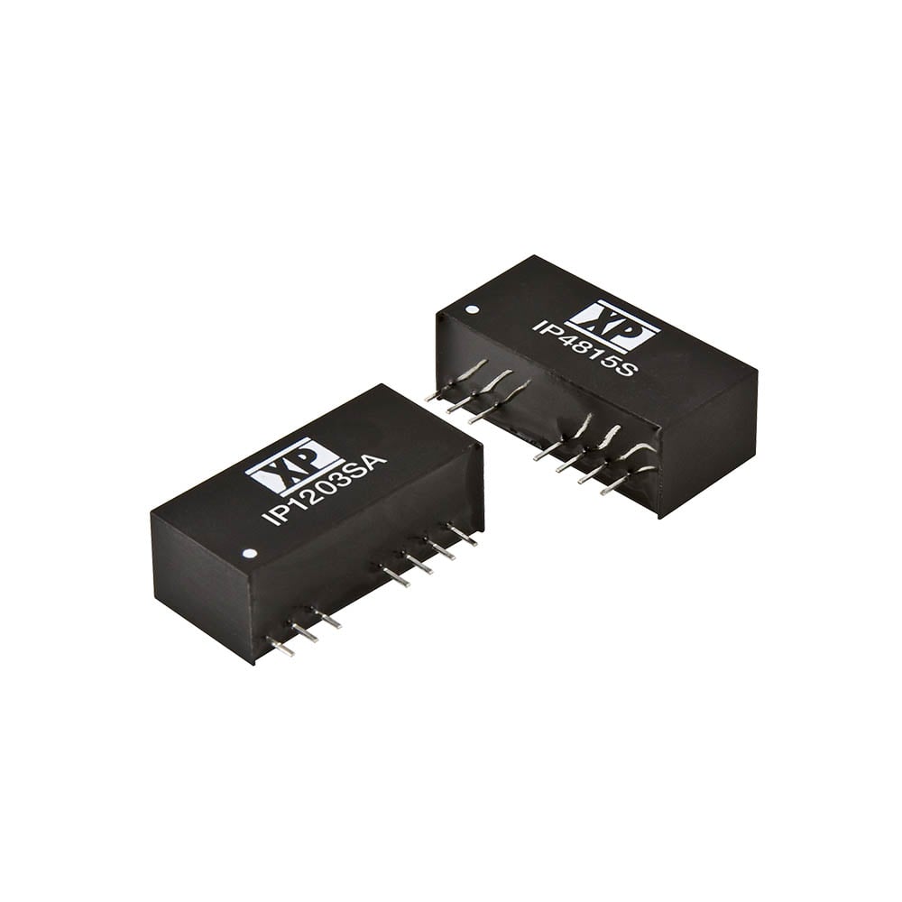 The IP series is housed in a SIP8 plastic case. Featuring a 4:1 input voltage range of 4.5 to 18VDC,  9 to 36VDC or 18 to 75VDC with both single and dual outputs, singles have 3.3, 5, 12 or 15VDC with duals having ±5, ±12 & ±15VDC.