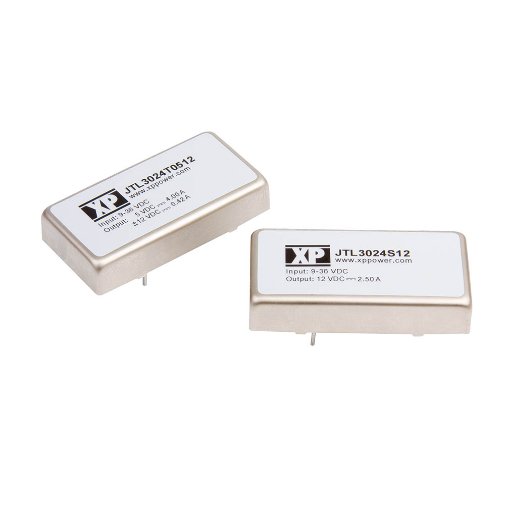 The 30W JTL30 series is housed in a 50.8 x 25.4 x 10.16 mm (2" x 1" x 0.4”) metal case. Featuring a 4:1 input voltage range of 9 to 36VDC or 18 to 75VDC with single, dual and triple outputs, singles have 3.3, 5, 12 or 15VDC with duals having either ±12 or ±15VDC, triples offer +3.3V or +5V in combination with either ±12 or ±15VDC. Single output models are adjustable +/-10% with an external trim resistor.