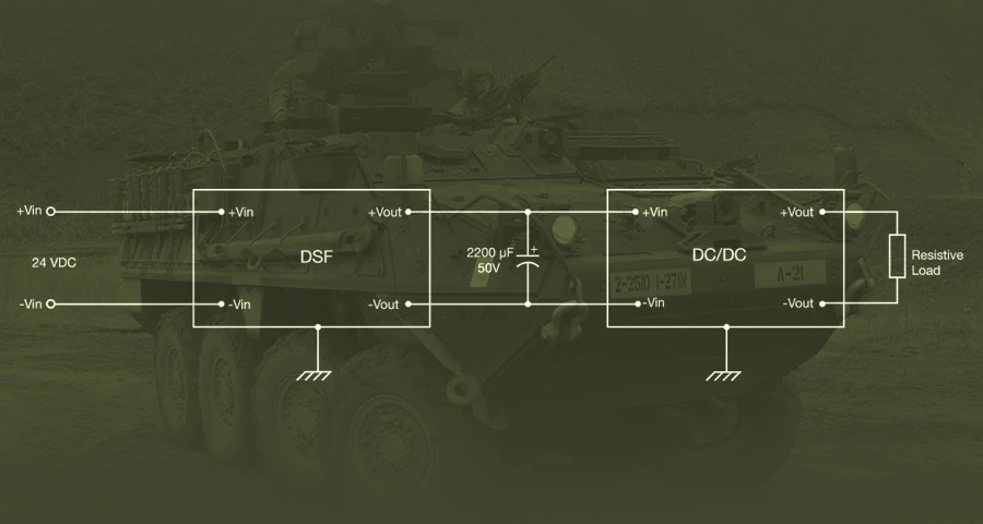 The best way to guarantee compliance with MIL 1275 in a DC-DC power system is to employ a standard, proven input protection module such as the DSF range from XP. Such modules are designed around the immunity standards providing protection against surges and spikes and incorporating a filter to control EMI.