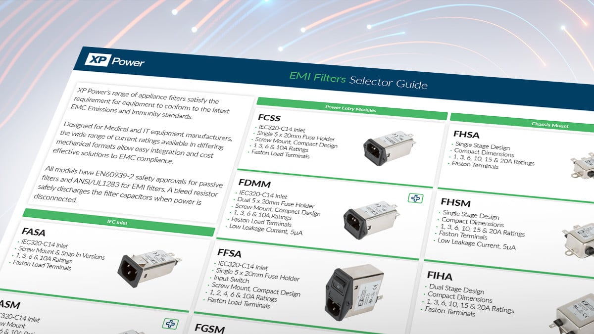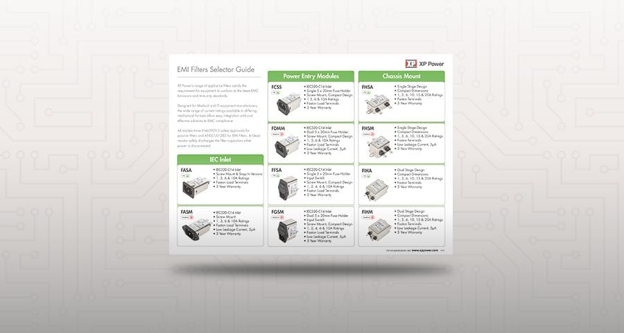This selector guide provides a quick reference and easy to follow graphical overview of our EMI filter product line.