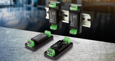 Encapsulated DC-DC converters offer chassis or DIN rail mounting