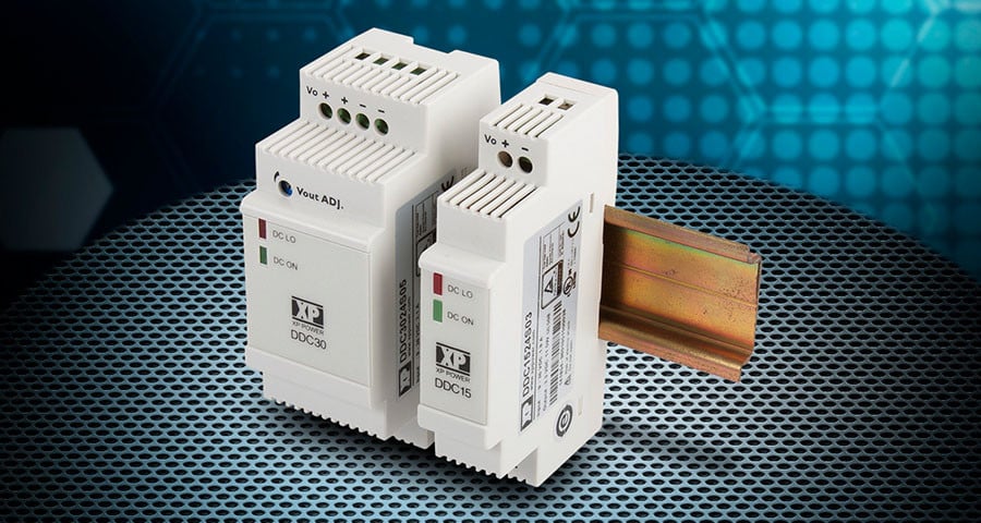 XP Power announced today the DDC15 and DDC30 series of low profile 15 Watt and 30 Watt DIN rail format DC-DC converters. The range is designed to offer additional voltages in DIN rail power systems, provide isolated outputs & noise immunity or support battery powered or battery backed applications. The single output converters accommodate the wide 4:1 input range from 9 36 VDC suiting a 12 or 24 VDC nominal input. Both series are available with a choice of a 5, 9, 12, 15 or 24 VDC nominal output. Additionally, the DDC15 model is available with a 3.3 VDC output. Input to output isolation is 1500 VDC.